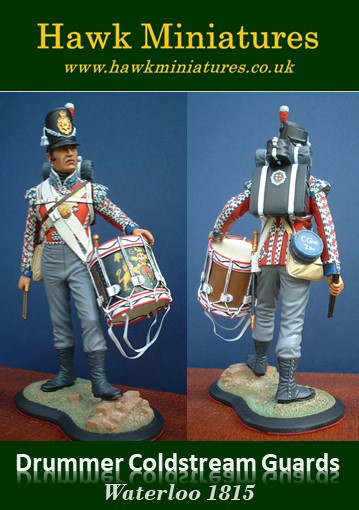 Hawk Miniatures is proud to present a 100mm fine scale model figure kit of a Drummer, 2nd Battalion Coldstream Guards, Waterloo 1815.