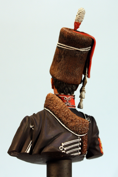 Sergeant The 15th (Kings) Hussars Bust, 1805Hawk Miniatures presents a 1/12th fine scale model bust kit of a Sergeant from the 15th (Kings) Hussar during the Napoleonic period, in full dress uniform.Manufacturer: Hawk Miniatures Availability: 10 in stockSKU: DFG/01 £24.95 Qty: Add to cart Custom wishlist OKAdd to wishlistEmail a friendSergeant The 15th King's HussarsFull Dress 1805 – 1808Hawk Miniatures is proud to present a 1/12th fine scale model bust kit of a Sergeant from the 15th (Kings) Hussar during the Napoleonic period, in full dress uniform.Sculpted By: David F GrieveOriginal Painted By: Eddy VandersteenScale: 1/12th BustKit DetailsThe set is a multi-part bust kit depicting a Sergeant from the 15th (Kings) Hussars in full dress uniform during the Napoleonic period.The bust is 1/12th in scale and supplied unmade and unpainted.The kit requires assembly and is not suitable for children under 12.The artist provided the groundwork shown in the pictures; it is not included in the kit.Products specificationsAttribute nameAttribute valueConditionNewScale1/12thProduct tags Napoleonic (27), British (44), 1/12 (2), DF Grieve (10)