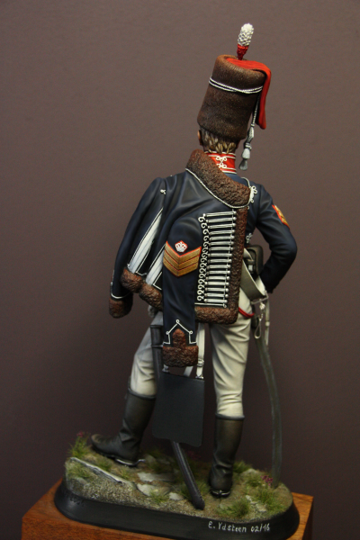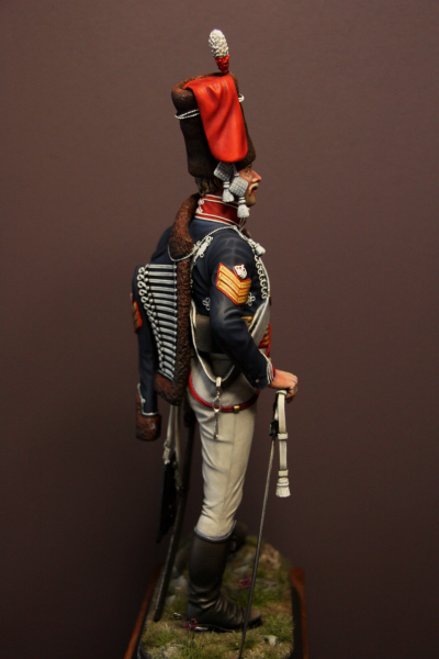 Sergeant The 15th (Kings) Hussars Figure, 1805Hawk Miniatures presents a 150mm fine scale model figure kit of a Sergeant from the 15th (Kings) Hussar during the Napoleonic period, in full dress uniform.Manufacturer: Hawk Miniatures Availability: 10 in stockSKU: DFG/02 £49.95 Qty: Add to cart Custom wishlist OKAdd to wishlistEmail a friendSergeant The 15th King's HussarsFull Dress 1805 – 1808Hawk Miniatures is proud to present a 1/12th fine scale model bust kit of a Sergeant from the 15th (Kings) Hussar during the Napoleonic period, in full dress uniform.Sculpted By: David F GrieveOriginal Painted By: Eddy VandersteenScale: 1/12th BustKit DetailsThe set is a multi-part bust kit depicting a Sergeant from the 15th (Kings) Hussars in full dress uniform during the Napoleonic period.The bust is 1/12th in scale and supplied unmade and unpainted.The kit requires assembly and is not suitable for children under 12.The artist provided the groundwork shown in the pictures; it is not included in the kit.Products specificationsAttribute nameAttribute valueConditionNewScale150mmProduct tags Napoleonic (27), British (44), 150mm (2), DF Grieve (10)